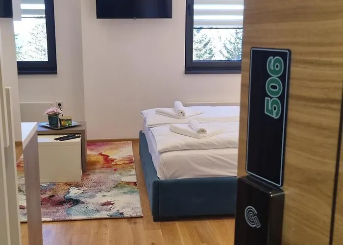 Det 4-stjärniga Apartman 506 Aparthotel Zlatni Javor Jahorina erbjuder gästerna närhet till Poljice, som ligger cirka 11 minuters promenad bort. Det här hotellet har 24-timmars säkerhet. Det finns också restaurang.